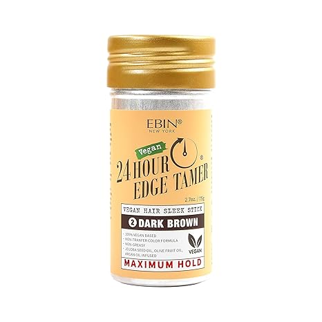 EBIN New York 24HR Vegan Hair Sleek Stick in Dark Brown provides all-day hold and smooths hair with a natural finish. This 2.7oz stick is formulated with vegan ingredients, making it a cruelty-free choice for managing flyaways and defining edges without buildup. Ideal for maintaining a sleek, polished look while nourishing the hair.